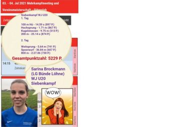 Beim Pfungstädter Abendsportfest (07. Juni) gelang Malin Bruhns (LC Solbad Ravensberg) über 800 Meter mit erzielten 2:19.44 Minuten der langersehnte Sprung unter die 2:20-Schallmauer.Herzlichen Glückwunsch 💪!!